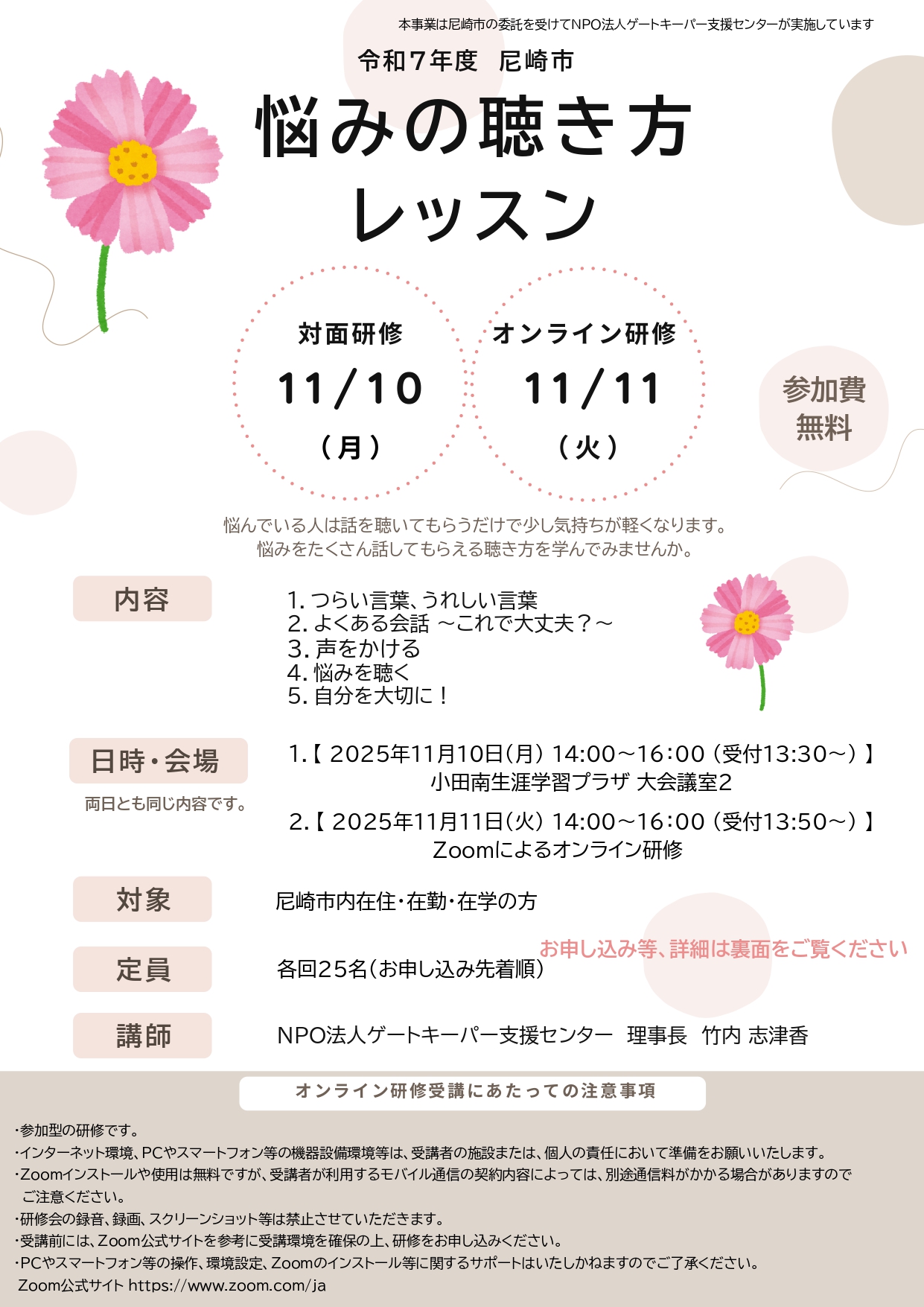 令和7年度尼崎市委託事業尼崎市悩みの聴き方レッスン